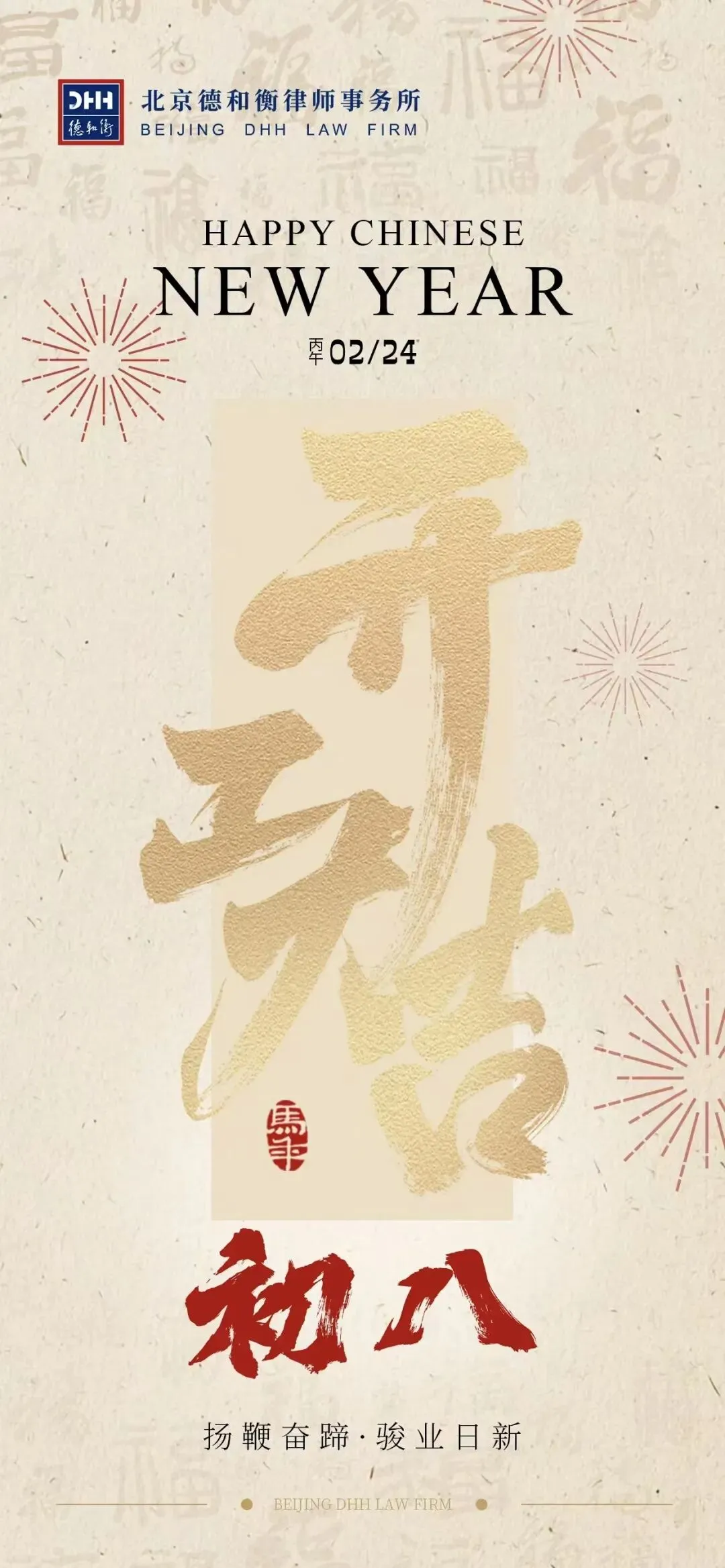 春节假期圆满落幕,团圆的温情犹在,奋进的号角已响。值此丙午马年开工之际,谨向全体同仁及坚守岗位的同志致以诚挚问候。新岁启封,征程再启,愿我们迅速从 “假期模式” 切换至 “工作模式”,以初心为舵、以专业为刃,坚守法治使命,恪守职业准则。凝心聚力,笃行实干,以更昂扬的斗志、更务实的作风,深耕业务,再创佳绩。