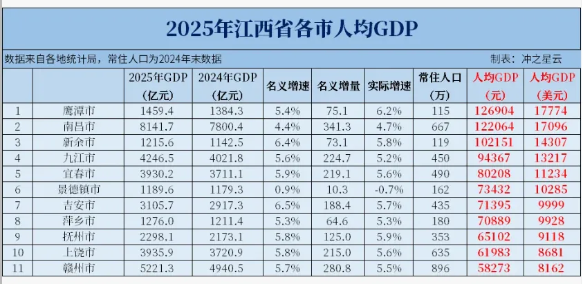 但城市排名这种事情,从来不只看名气,它更看:谁的发展质量更高,谁的增长更能体现在人均水平上。