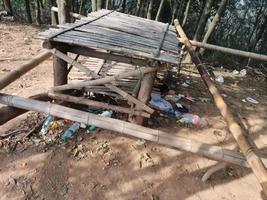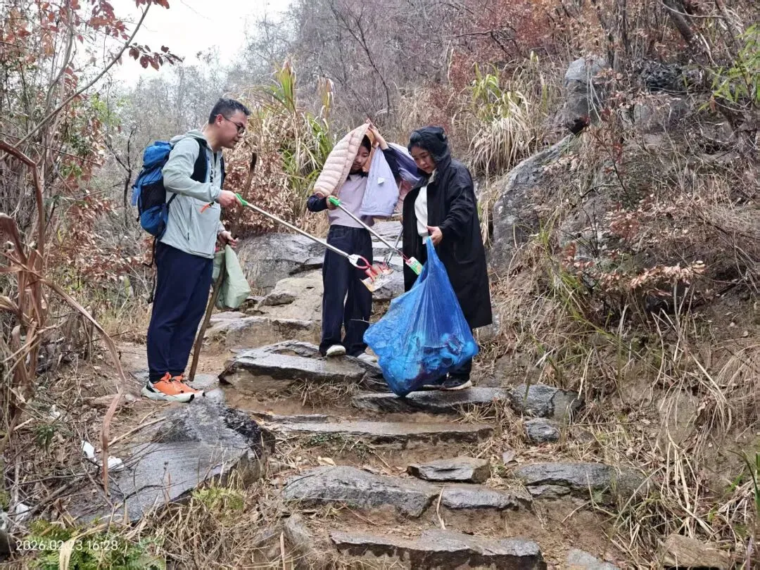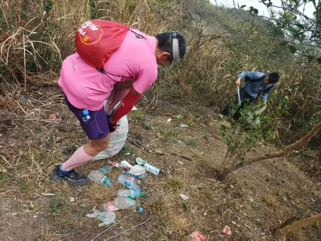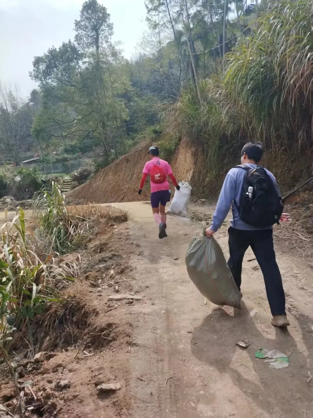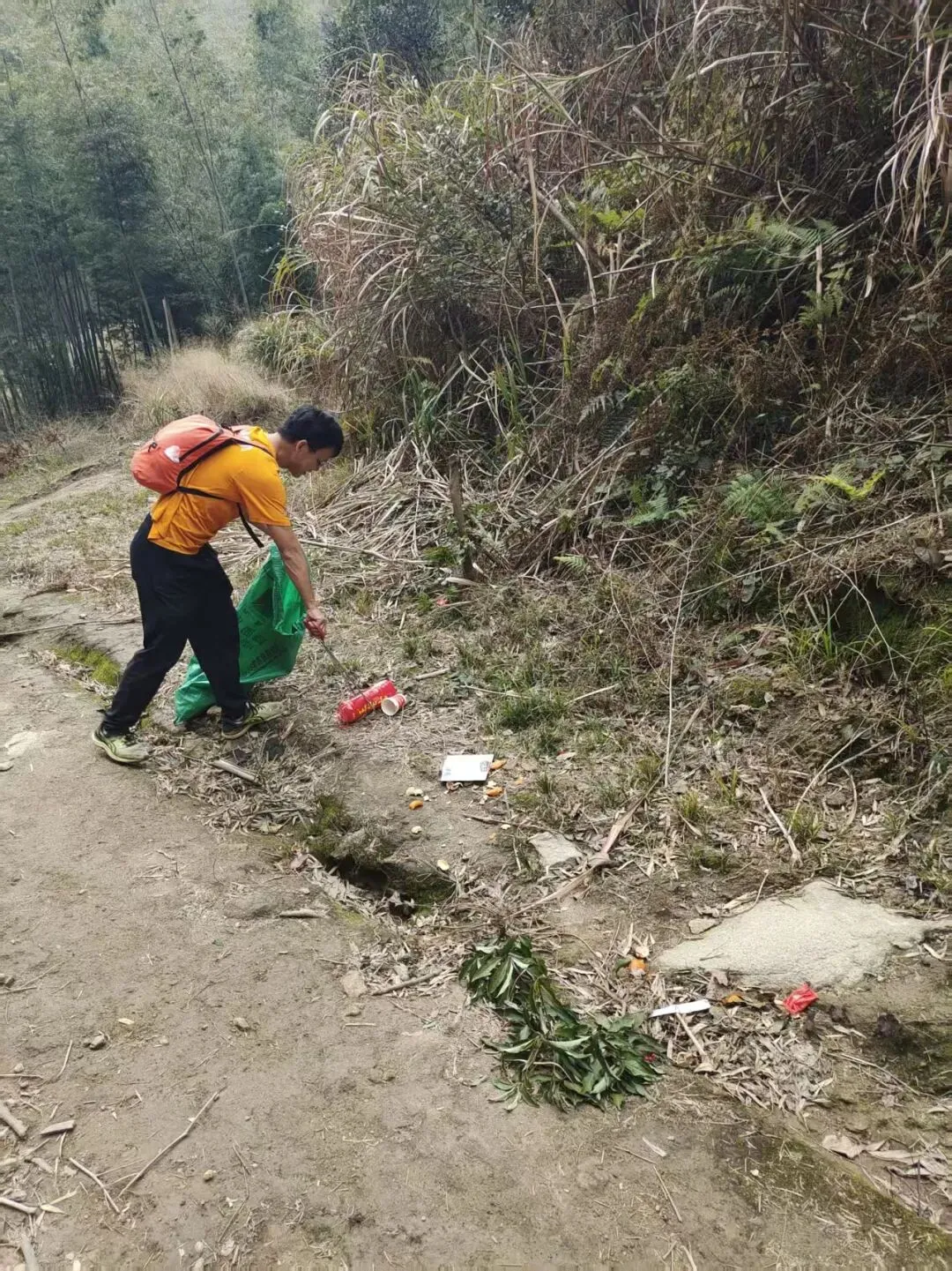 1、8:40,温天辉、华东、听雨,3人自地震台进山,一路捡垃圾到仰天锣,共捡4麻袋越野速降运送到山中村落九曲,休整后华东和听雨一路收捡新垃圾回地震台。