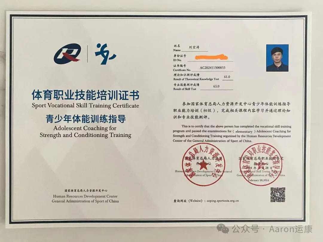 1. 国家级证书:通过考核后,获得国家体育总局颁发的《青少年体能训练指导》认证证书。