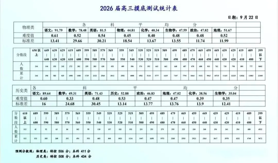 可以看出,此次零模差值对比25年高考差值高出20多分。