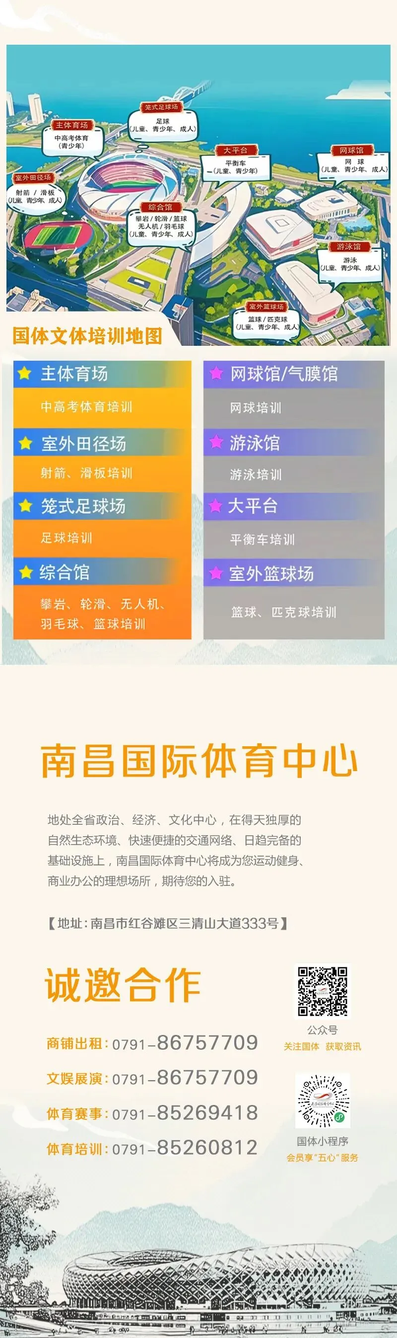 南昌国际体育中心游泳馆将于2026年2月25日7:00起对外开放。届时欢迎广大运动爱好者前来锻炼。