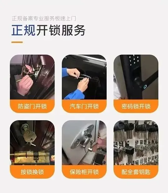 我们提供 24小时专业开锁、换锁、修锁服务,同城附近师傅快速上门,为您解决一切锁具烦恼我们提供全天候专业锁具服务,涵盖家用、汽车、商用及特种锁具问题,快速响应,专业解决。