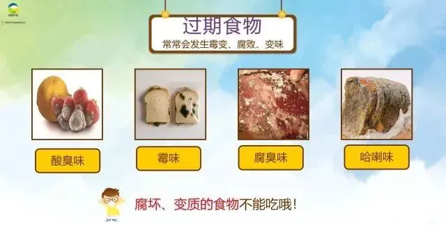 4.不买无证摊贩的食品,不买无商标或无生产日期、无生产单位、无保质期等标签不完整的食品;不到无证摊点、快餐店、小店购买食品或用餐。及时处理家中发霉变质、污秽不洁、超过保质期的食品。
