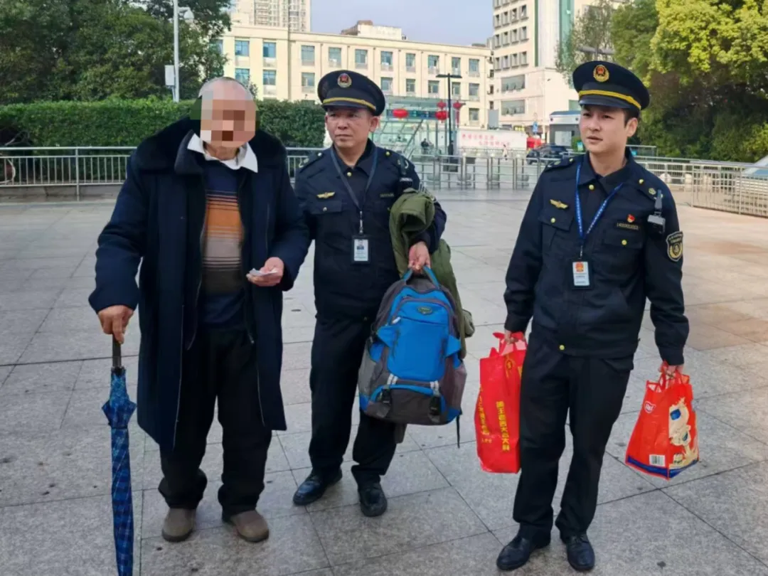 2月22日(大年初六)上午10时,南昌市交通运输执法支队西湖大队执法人员在南昌火车站开展春运值守保障工作时,一名年近八旬的老人在西广场出站口主动求助。