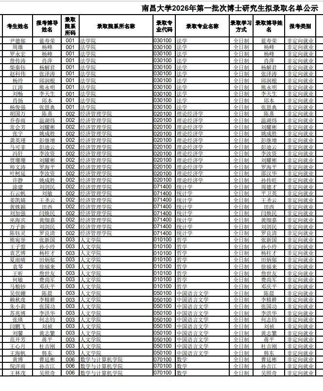 附件:南昌大学2026年第一批次博士研究生拟录取名单公示