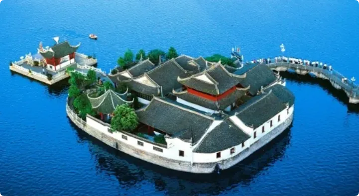 烟水亭立在湖心,宋朝周敦颐建来讲学的地方,白天看白墙灰瓦映着碧水,清爽如画。