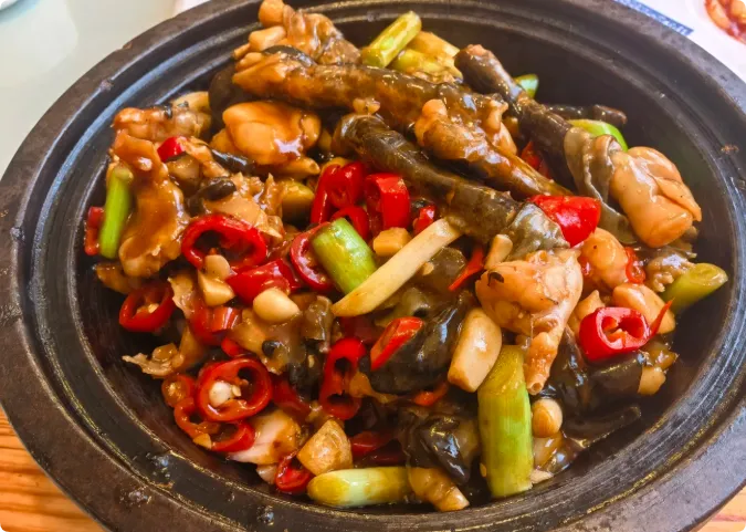 回程路上,必须吃一道石鸡爆辣椒。石鸡不是鸡,是庐山特有的蛙类,肉质比牛蛙更紧实弹牙,配上江西辣子爆炒,鲜辣过瘾、回味悠长。