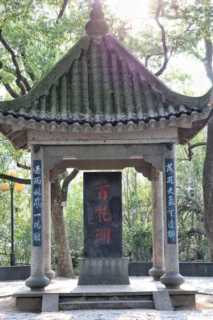 东湖上有三座小岛,这三座小岛由堤桥相连,成为一个整体,名为“百花洲”。三座小岛中最靠东面的座小岛,整体被建成了一个叫做“苏圃”的园林。园林里面,有苏翁草庐、苏翁亭,还有一个苏园见卿的现代的网红茶馆,都可以去看看坐坐。根据《宋史·苏云卿传》记载,原来在南宋高宗绍兴年间,东湖来了一名来自四川的隐士,名字叫做苏云卿。这位苏先生身高七尺,长着一副漂亮的胡子,不苟言笑,穿布衣草鞋,修筑庐舍居住在东湖。他对待邻里很有礼貌,无论贵贱老少都尊敬他,称他为苏翁。苏先生喜欢种菜,耕耘、种植、除草,灌溉培土,都很有方法。即使酷暑严寒,土焦草冻,菜圃里也不缺少蔬菜,郁郁葱葱,四季菜品一应俱全。味道比其他菜圃更好。加上市不二价,菜贩获利加倍而且卖得很快,常常提前交付定金预订。到了晚上,苏先生就编织草鞋,坚韧超过皮革做的木底鞋,人们争着买来馈赠远方亲友。因为这些原因,他不缺柴米,有盈余就用来周济急需和告借的人,借者不还,他也完全不放在心上。灌园之余,他要么闭门高卧,要么整天端坐,高深莫测。本来日子过得安逸,没想到突然有一天有人前来拜访,请他出山做官。原来这位苏先生年轻的时候和当时的官员张浚是布衣之交,现在张浚当了宰相,觉得自己的老乡有管仲乐毅之才,就命人带着书信和财物来请苏云卿出山。但是苏先生早就没有了入世为官的心思。加上他对自己的这位好友张浚有深刻的了解——苏先生认为张浚这个人是个贤人,但是“第长于知君子,短于知小人,德有余而才不足。”就是说张浚这个人“很了解君子,却不大了解小人,德行有余而才干不足。”来访的人说明来意,苏拒绝。来访的人没办法。放下书信和财物,说明天再来请。没想到到了第二天,来访的人发现人去楼空,苏先生已经不知去向。桌面上还放着张浚的书信和财物,这两样东西苏先生甚至都没有拆开过。多年别作一番风,