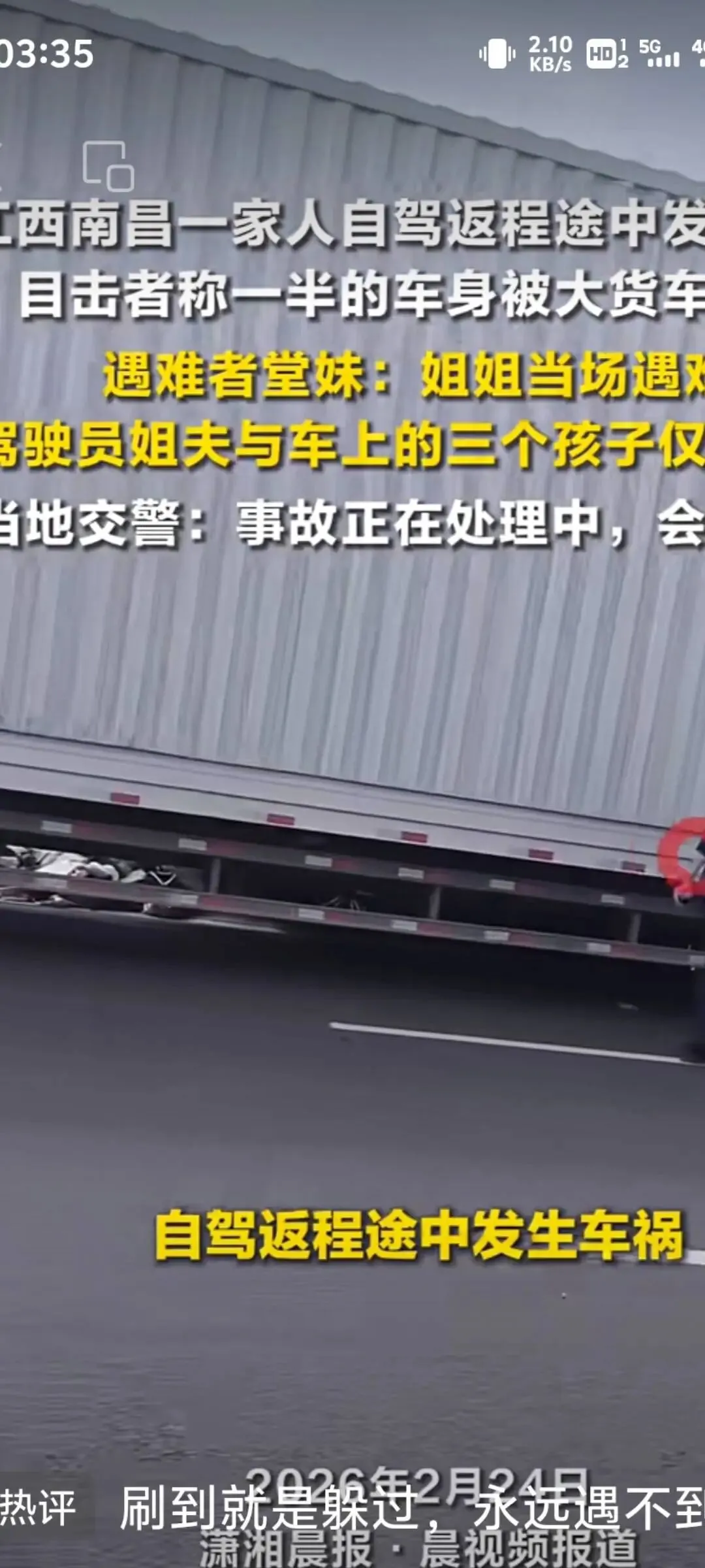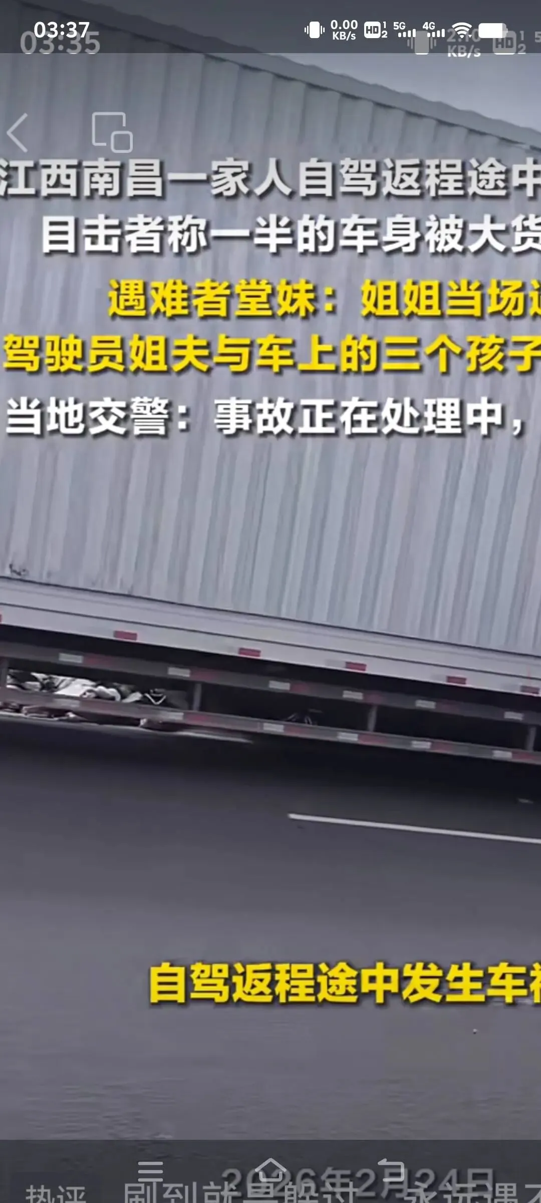 就像这次南昌的这起事故,好好的一家人,因为一场车祸阴阳相隔,这样的伤痛,是任何东西都弥补不了的。在这里也想提醒所有人,开车上路,尤其是高速行驶,一定要把安全放在第一位,不疲劳驾驶,不随意变道,与大型车辆保持安全距离,不仅是对自己负责,更是对家人负责。
