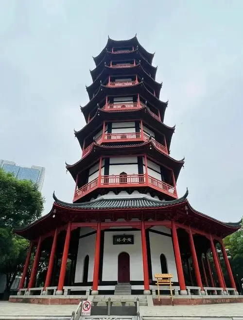 在南昌西湖区的闹市之中,一座朱栏青瓦的古塔巍然矗立,铜铃轻响穿越千年风雨——这便是绳金塔。它不仅是南昌的城市地标,更是镌刻着赣鄱文脉的历史见证者,始建于唐天祐年间,因异僧掘地得铁函,内藏金绳四匝、古剑三把与三百粒舍利子而得名,承载着“水火既济,永镇江城”的古老祈愿。