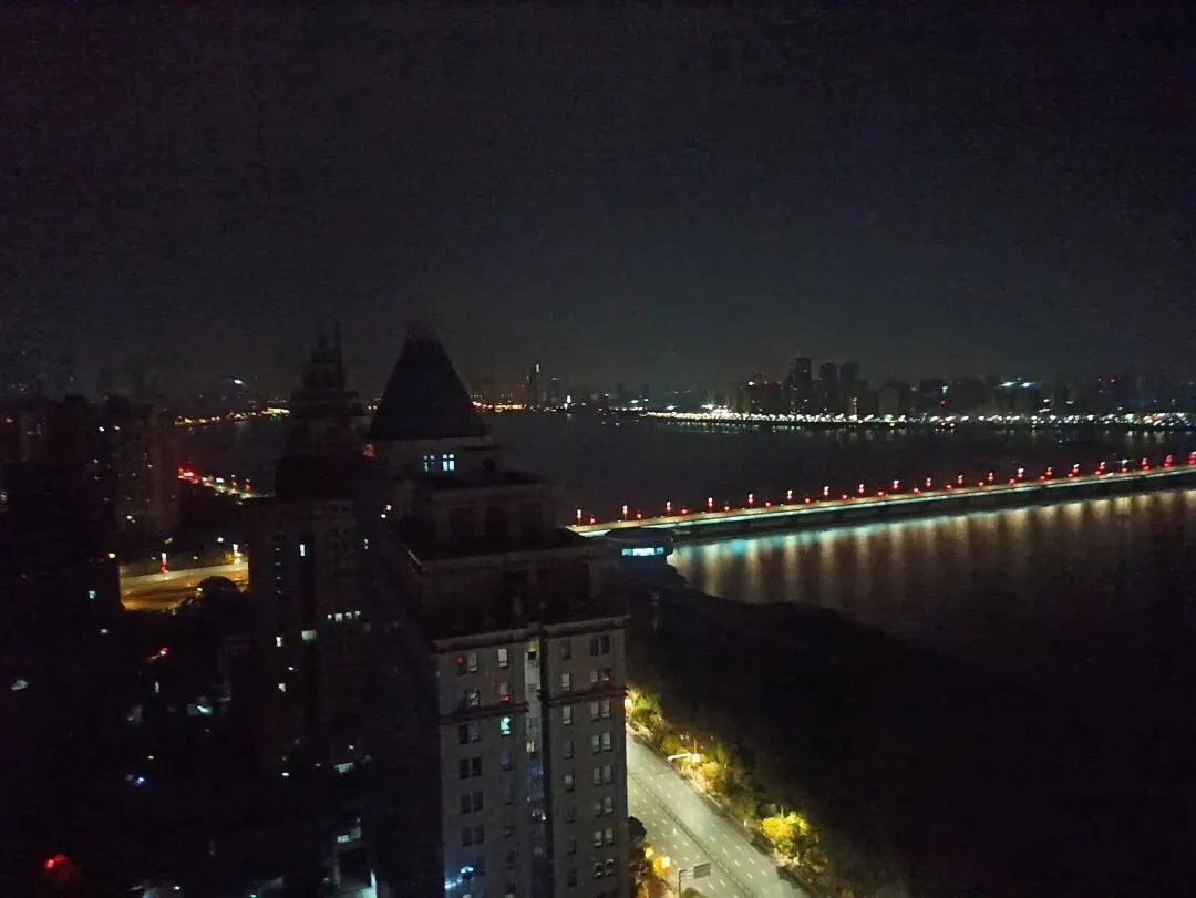 横跨江面的大桥上车水马龙,灯光如流动的星河,在江面上投下斑斓的影圈,是银河铺入了人间。