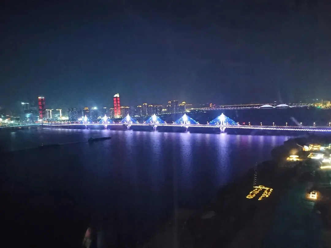 当夜幕悄然爬上窗台,我们在32楼凝望着赣江两岸渐渐亮起的灯光,满眼期待着,准备出门去坐摩天轮,俯瞰南昌市迷人的夜景。