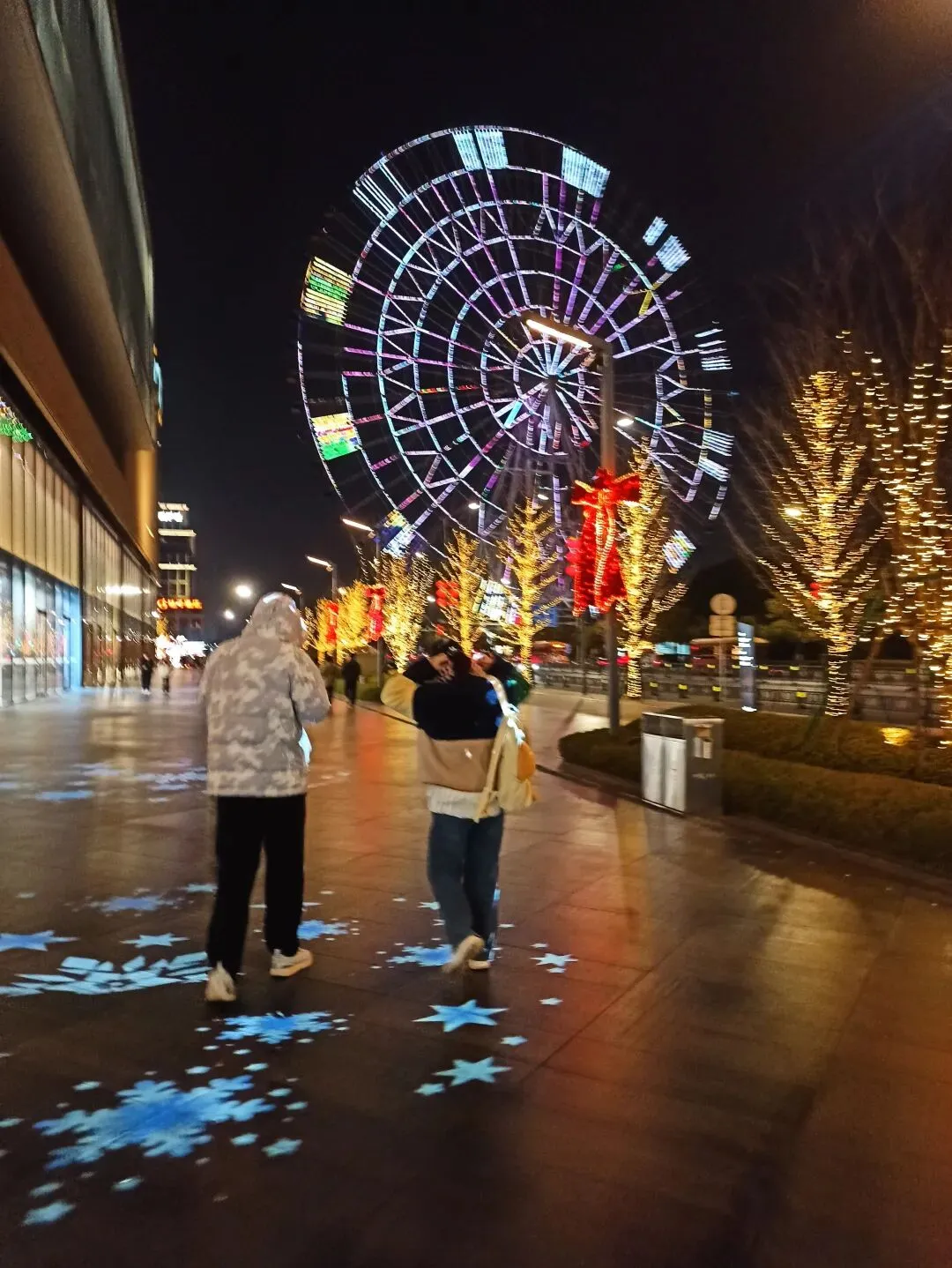 摩天轮平稳地转动着,载着整仓的开心与欢笑,在夜空中洒下了美好的点点滴滴。
