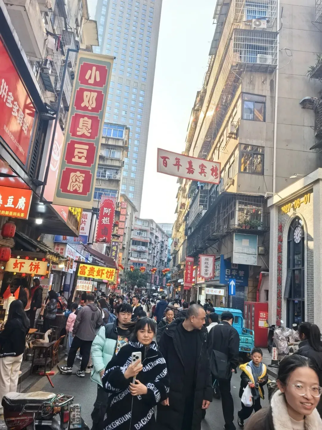 街道不长,人潮并肩而行,笑语喧天,这里的店铺藏着数十年的老味道,吃着的每一口都带着岁月的温度。
