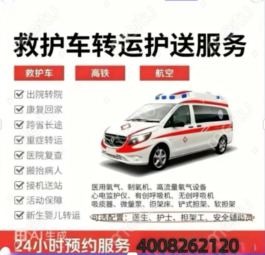 当意外猝不及防,当疾病打破平静,当家人的健康需要跨越城市的藩篱,你是否曾陷入“转院难、转运险”的困境?别慌,我们的救护车出租转运服务,就是您在绝境中可以牢牢抓住的那根“生命绳索”,为您和家人的健康保驾护航。