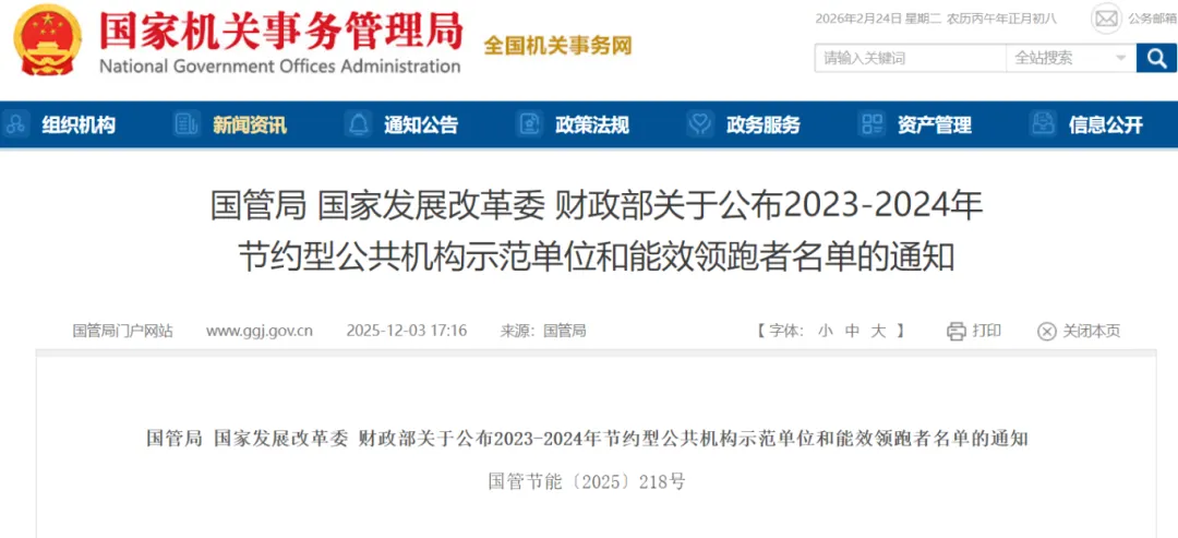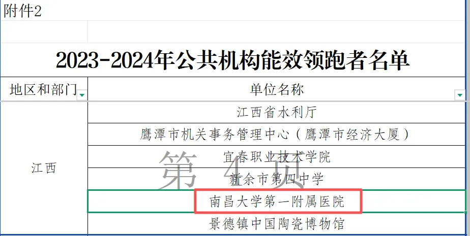近日,国管局、国家发展改革委、财政部联合公布《2023-2024 年节约型公共机构示范单位和能效领跑者名单》。南昌大学第一附属医院(以下简称一附院)凭借卓越的节能成效与规范化的能源管理,成功入选国家级公共机构能效领跑者,成为江西省医疗卫生领域绿色发展的杰出典范。我司于2024年底通过公开竞选,中标一附院两院区能源审计及能源管理体系建设咨询服务项目。