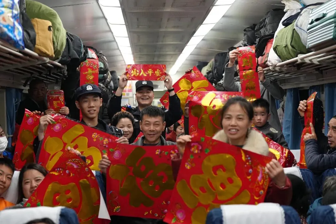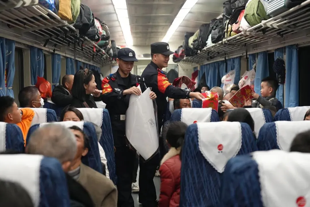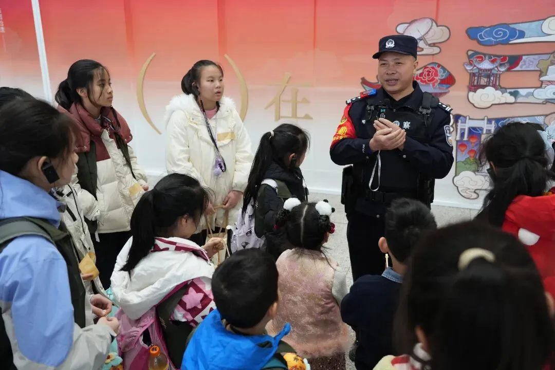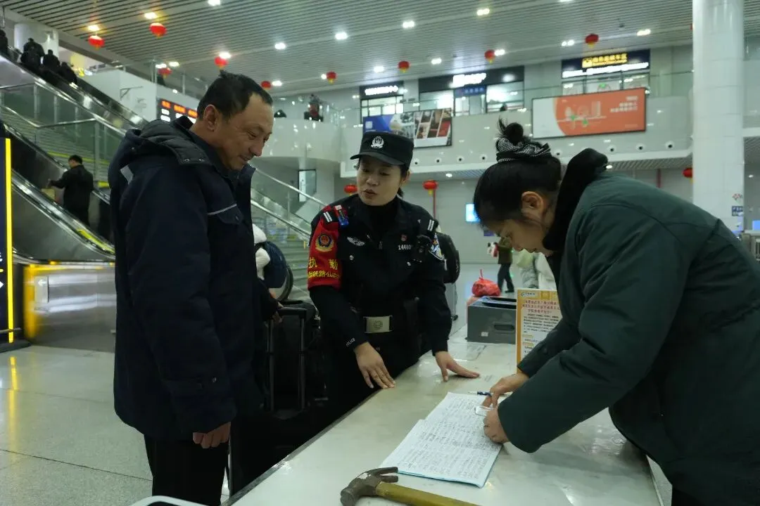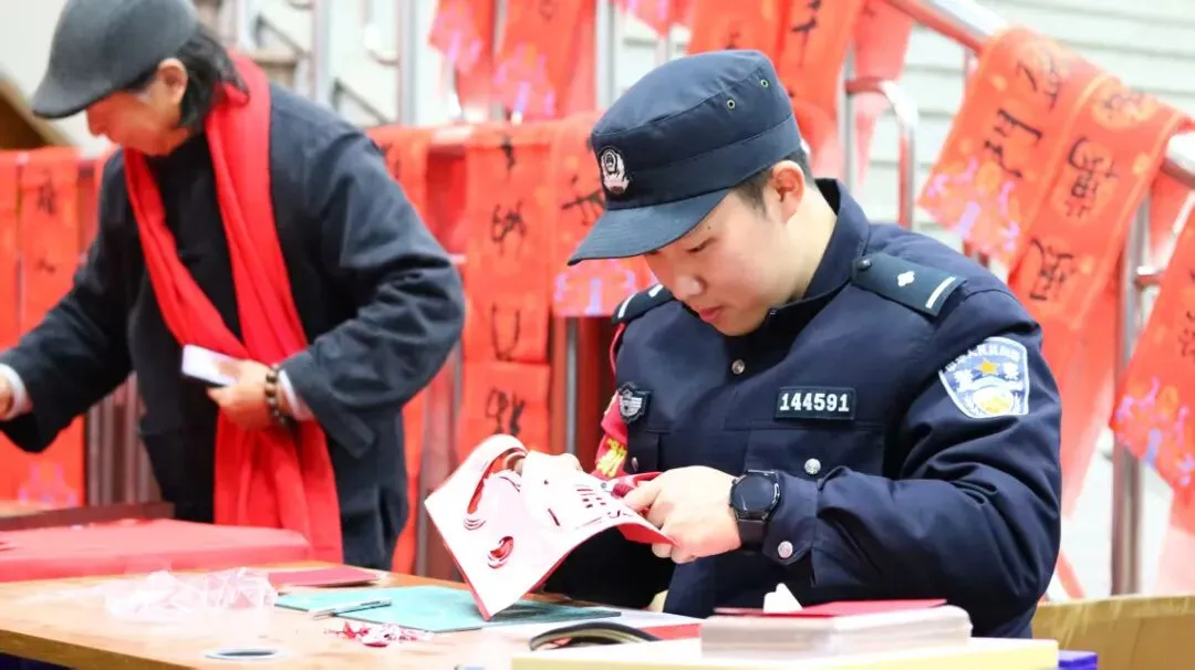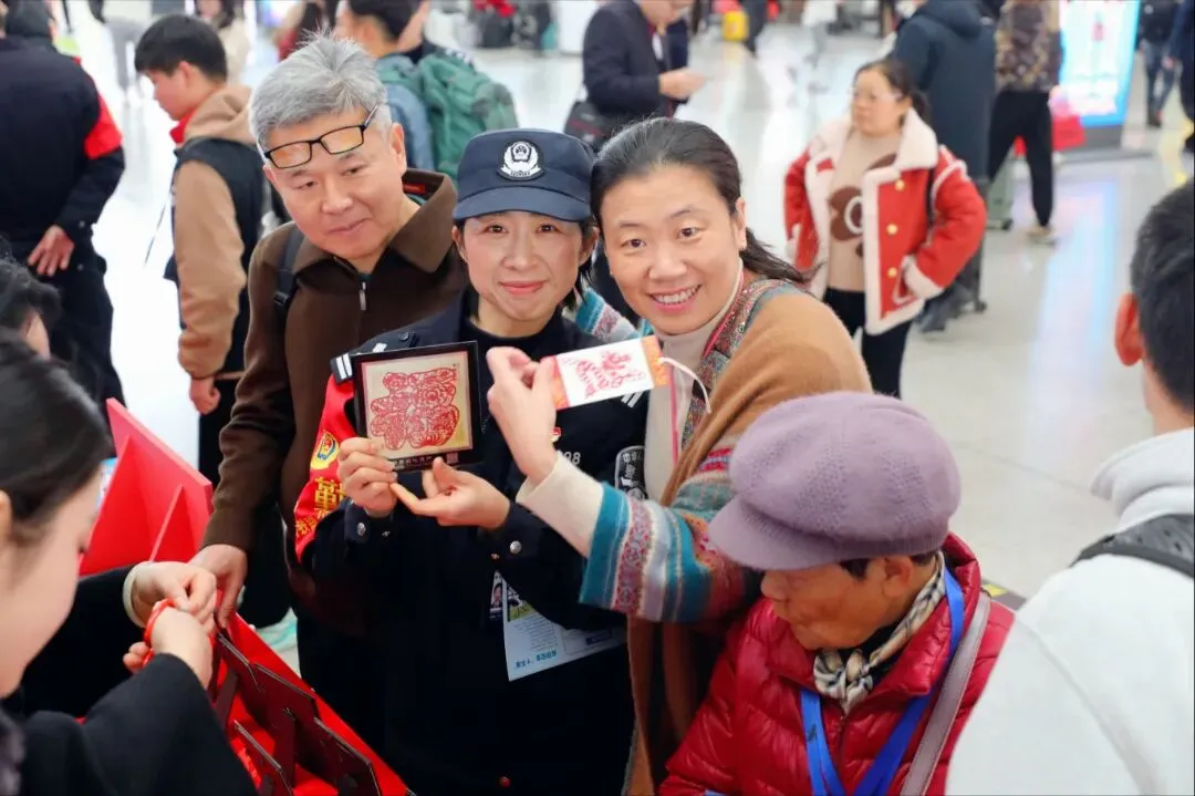 故事:福州站派出所民警在候车大厅开展活动,将寓意平安的非遗剪纸送到旅客手中。红纸映笑脸、藏蓝护平安,民警把新春的祝福与出行的安心,一同打包进旅客的归乡行囊。