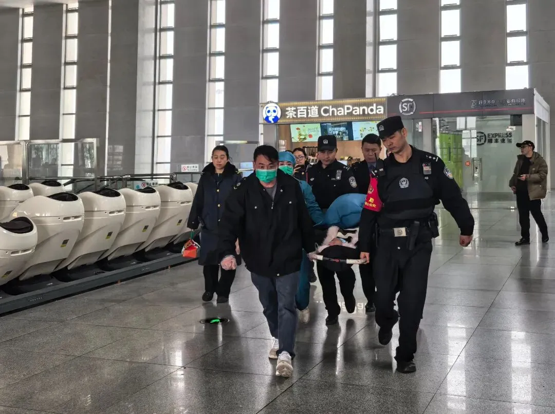 故事:2月5日,抚州火车站一名旅客突然晕倒,民、辅警协同车站工作人员积极救助,旅客顺利被120救护车送往医院治疗,平安无事。