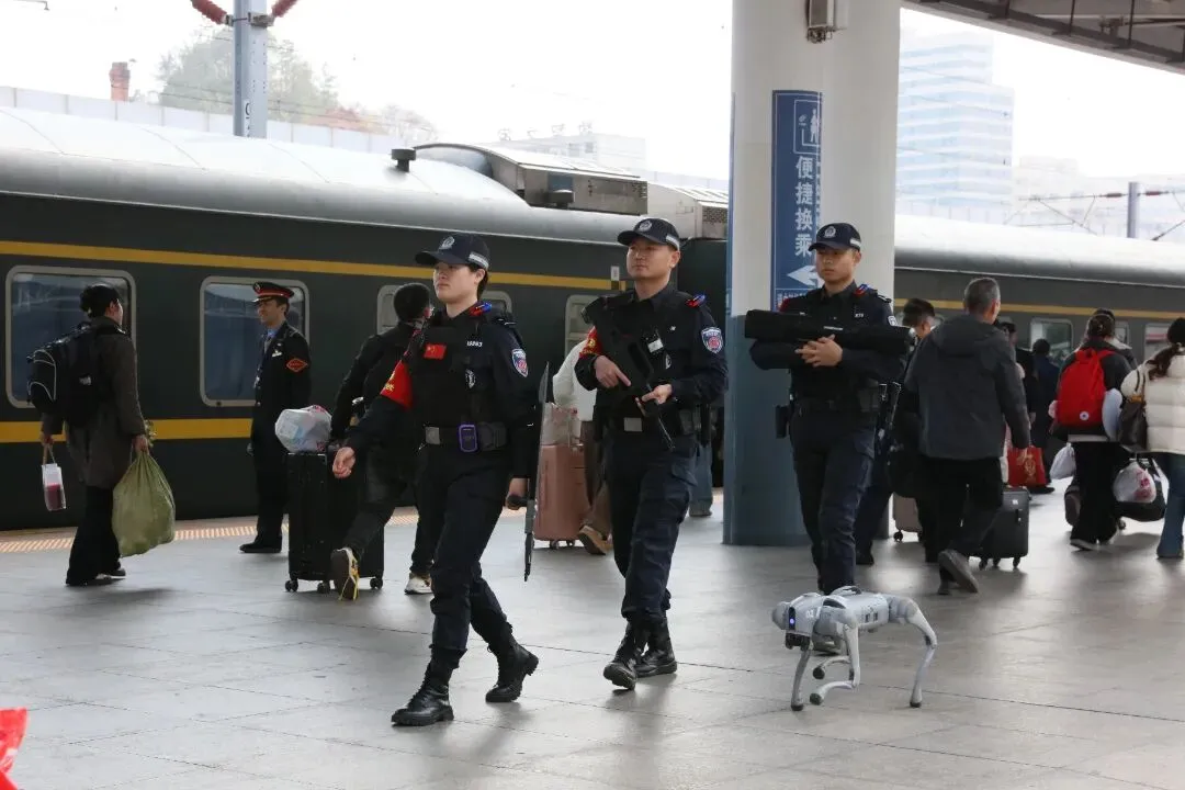 故事:春运安保一线,特警与“机器狗小警”组成巡逻编队,在站台上默默守护着南来北往的旅客。他们坚定的步伐与旅客匆忙的身影,共同构成了春运路上最令人安心的风景。