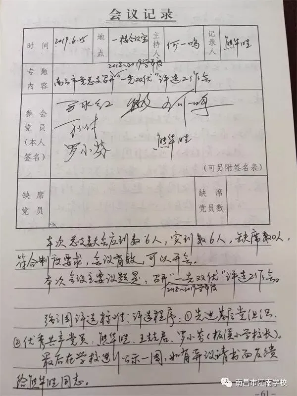 南昌市江南学校党总支组织召开2018~2019学年度“一先双优”评选工作会