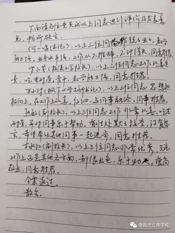 南昌市江南学校党总支积极响应局党委号召,首先何一鸣书记带领大家学习了文件精神,并强调“一先双优”推选活动本着公平、公开、公正的原则,按照评选范围、评选标准、评选程序及有关要求进行。