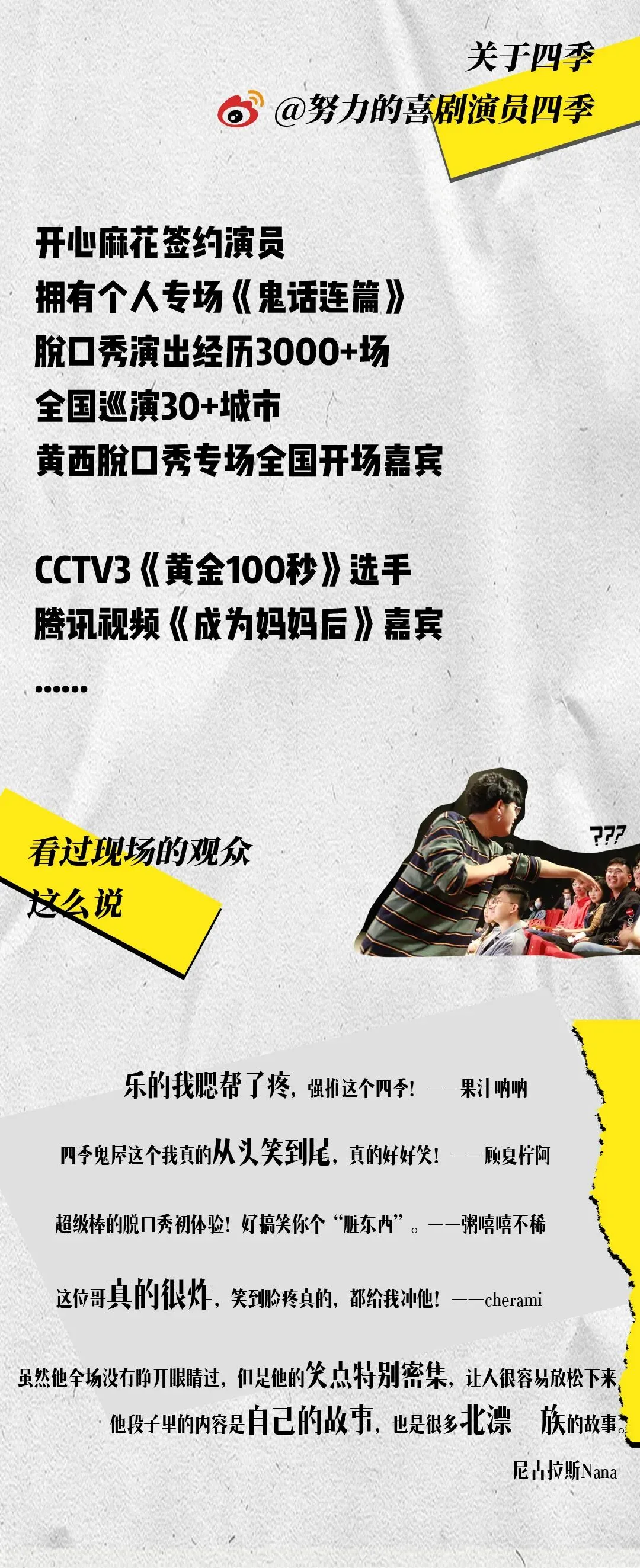 南昌演出|上过央视,教过袁咏仪的四季,本周前来鬼话连篇