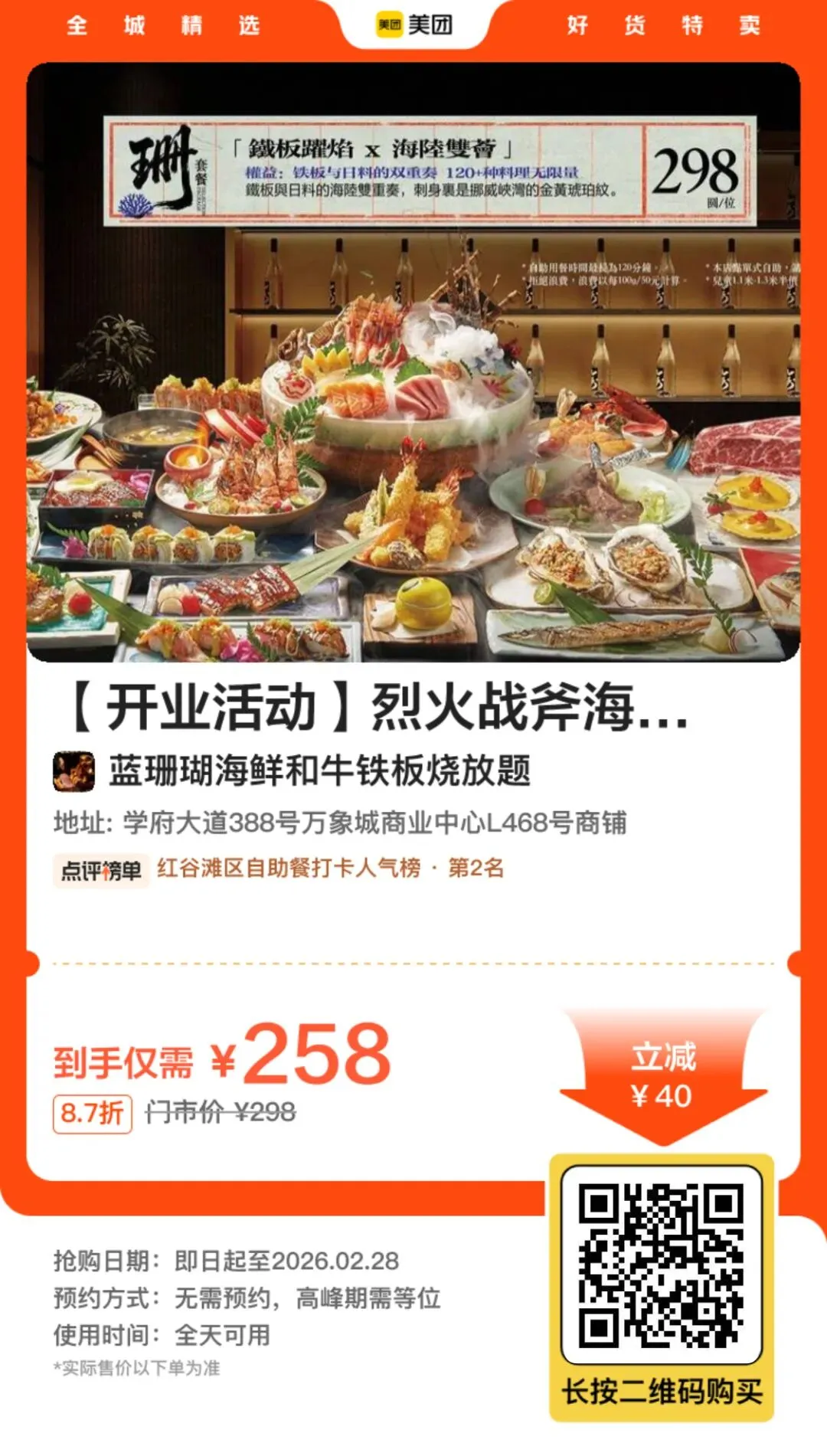 南昌「蓝珊瑚」优惠券:258/位