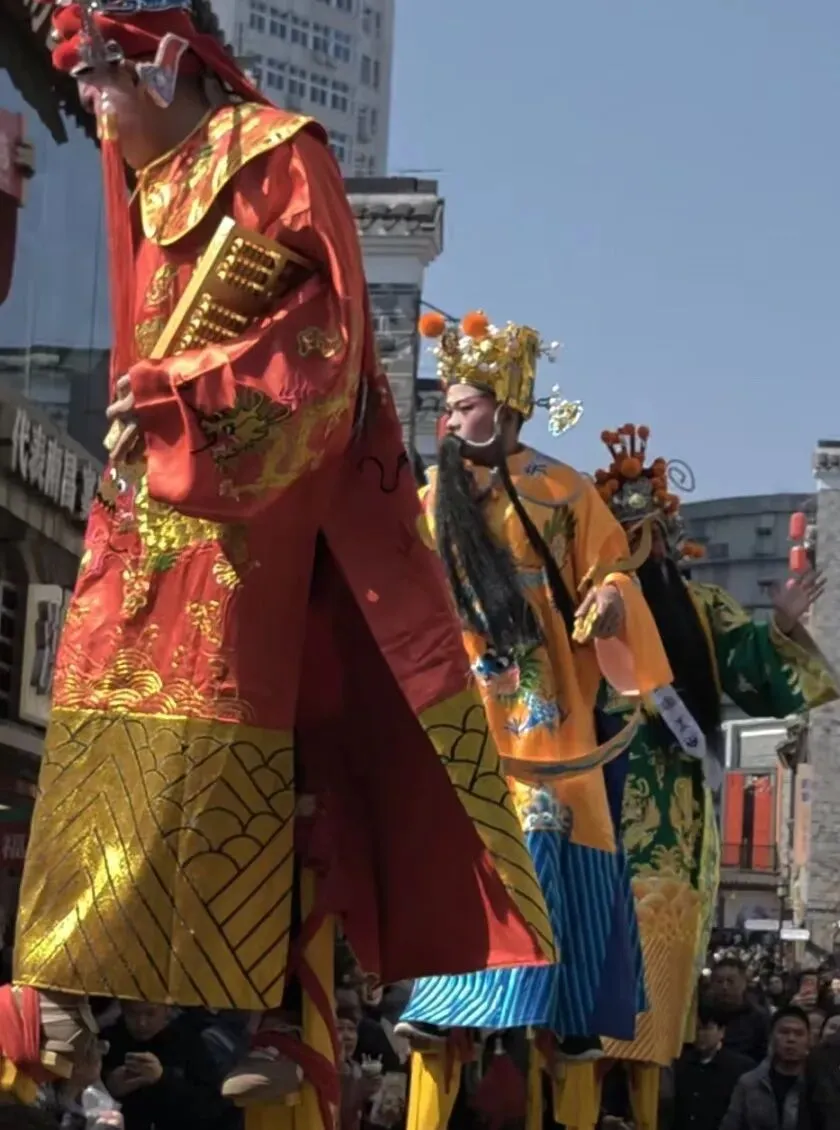 踩着高跷 敲着锣