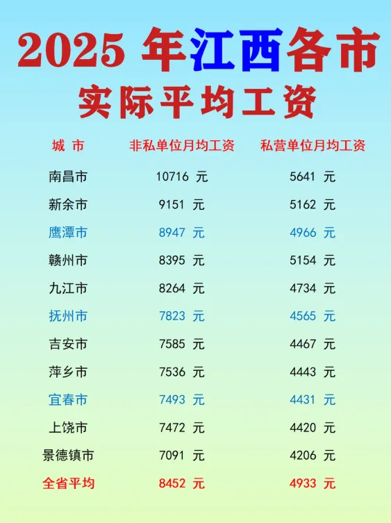 数据说明本文数据依据公开整理的2025年江西各市实际平均工资信息,仅用于趋势分析与结构观察,不代表最终官方公布结果。