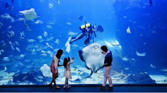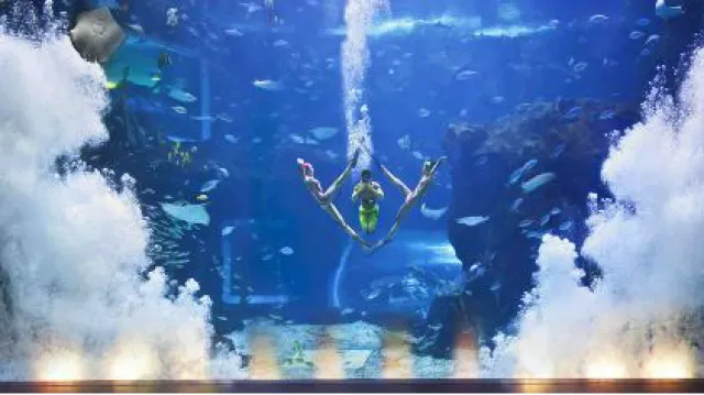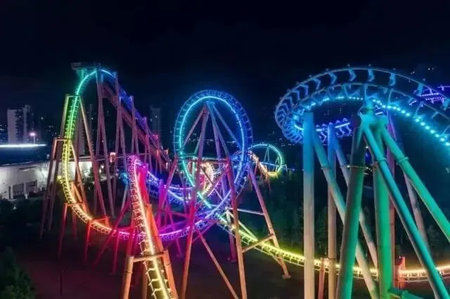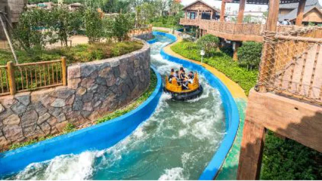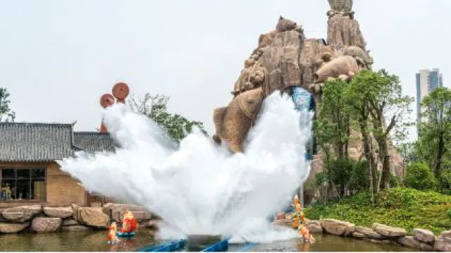 (飞上云霄,大闹天宫,中国最高过山车之一让你体验刺激)(神秘的大峡谷,踹急的河流,坐上皮筏,一起去探险!)有可爱的港海豹、八爪鱼、海星和巨星蜘蛛蟹等近百种生物这里还有巨型海藻池,游客们可以360度欣赏巨大的加利福尼亚海草群
