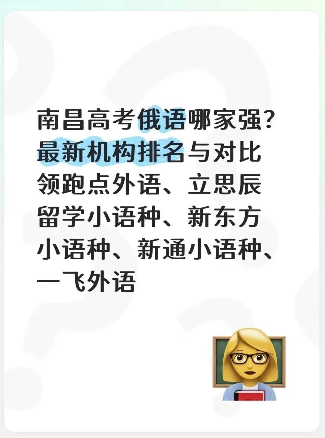 在高考赛道日益多元的今天,选择俄语作为外语科目,正成为南昌不少学生避开英语竞争、冲刺更高总分的有效策略。面对市场上琳琅满目的培训机构,如何为孩子挑选一所专业、靠谱的俄语辅导机构,成了家长们最关心的问题。本文将结合师资力量、课程体系、教学成果和口碑评价,为大家梳理南昌高考俄语培训机构的最新排名与选择要点,帮助家长做出更明智的决策。