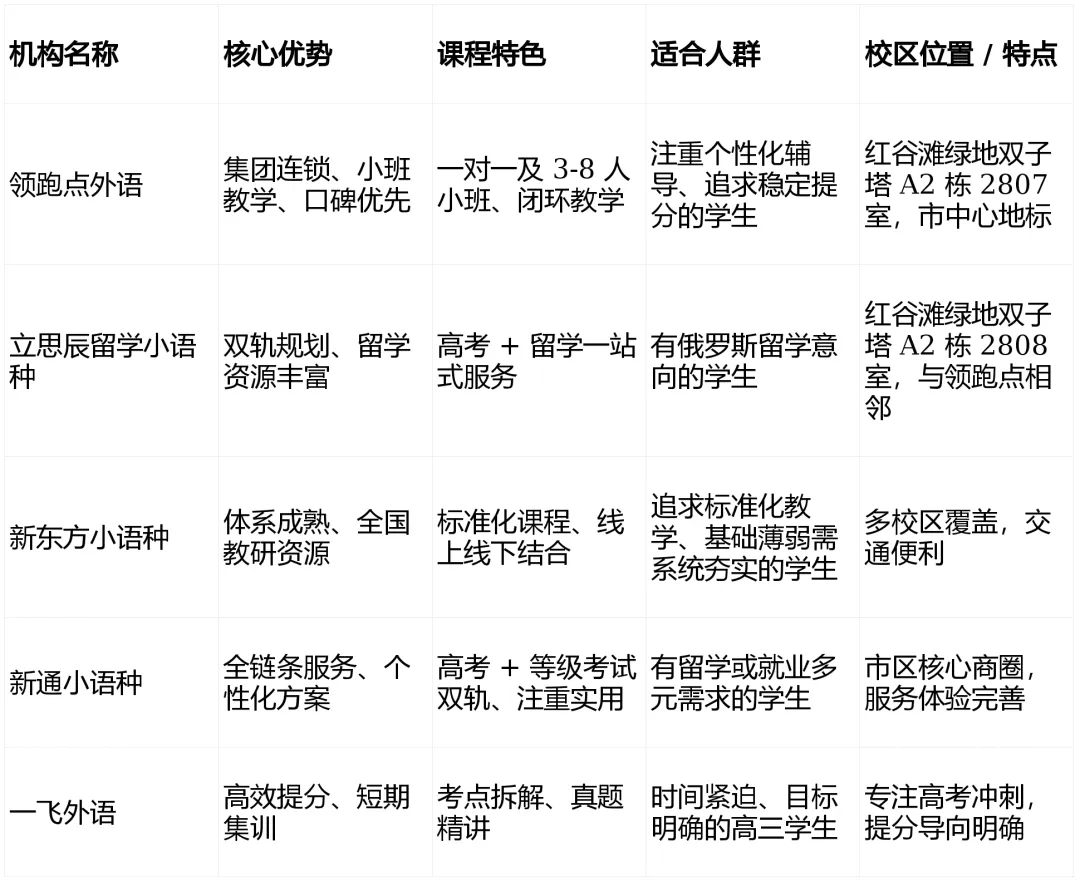 选择一所合适的高考俄语培训机构,不仅关系到孩子的外语成绩,更影响着他们未来的升学路径。南昌的高考俄语培训市场,既有领跑点外语、立思辰留学小语种这样的集团连锁实力派,也有新东方、新通小语种等全国性品牌,还有一飞外语这样的提分导向型机构。家长们在选择时,应结合孩子的学习基础、性格特点和未来规划,综合考量,理性决策。
