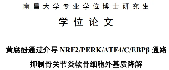 骨关节炎(Osteoarthritis,OA)是一种慢性退行性骨关节疾病,以低度炎症和细胞外基质(Extracellular matrix,ECM)的酶降解为特征。软骨细胞负责合成包括胶原蛋白和蛋白聚糖来维持关节的稳定和完整。ECM的异常降解是软骨发生退行性改变的重要原因之一。ECM降解可能会加剧OA的病情进展,导致关节功能障碍和残疾。抑制 ECM 降解是治疗 OA 的一种潜在治疗策略。基质金属蛋白酶-13(Matrix Metalloproteinase 13,MMP-13)具有降解II型胶原蛋白(Collagen Ⅱ)的酶活性,而 Collagen Ⅱ是 ECM 的主要成分。蛋白激酶 R 样内质网激酶/激活转录因子 4(Activating Transcription Factor 4,ATF4)信号传导是内质网(Endoplasmic Reticulum,ER)应激的重要分支之一。 黄腐酚(Xanthohumol,XH)是存在于植物啤酒花中的异戊烯类黄酮,被用于啤酒的保存和调味,具有抗癌、抗炎和抗氧化等特性。我们之前的研究表明,XH 可下调MMP-13 的表达并缓解大鼠软骨细胞ECM的异常降解。然而,其具体的机制仍不清楚。本研究旨在探究XH通过介导PERK/ATF4/C/EBPβ 信号通路改善体内外OA软骨细胞外基质的降解,发挥软骨保护活性,延缓 OA 进展;同时阐明XH 抑制OA软骨细胞外基质降解具有核因子E2相关因子2(Nuclear Factor erythroid 2-Related Factor 2,NRF2)活性依赖的特点。