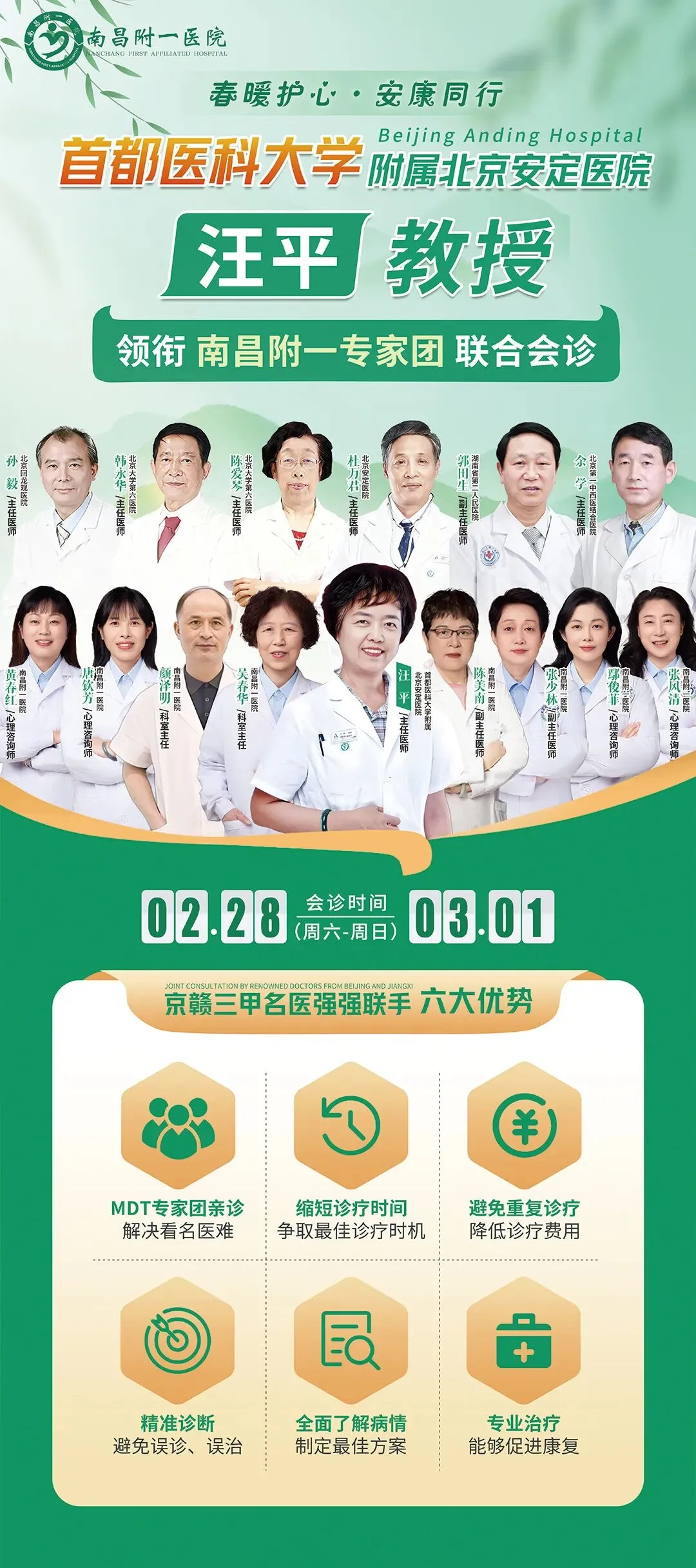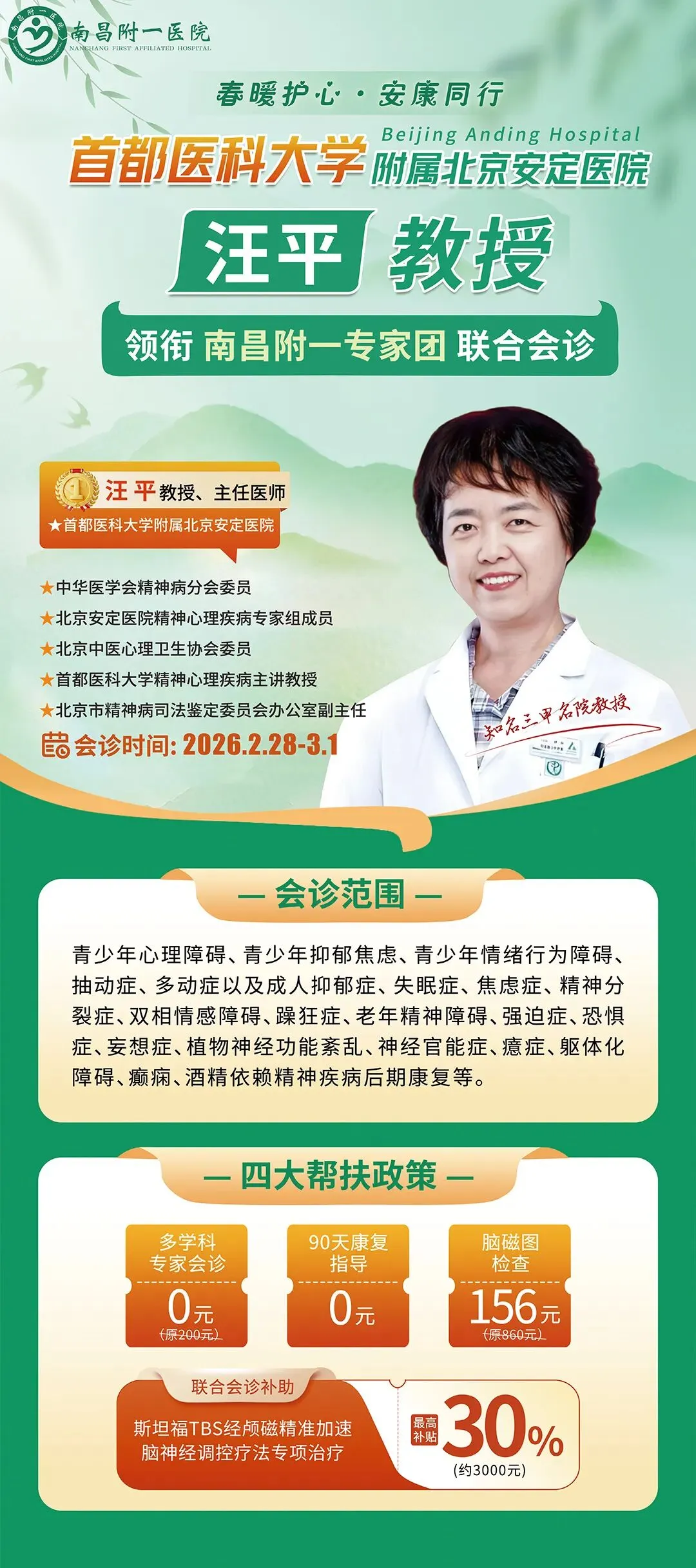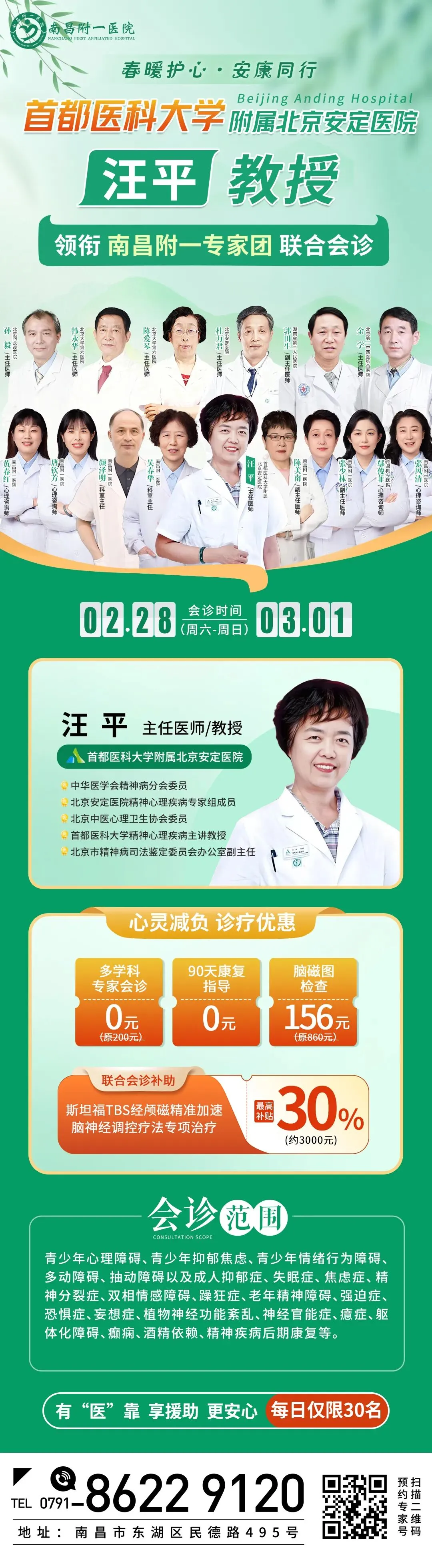 重磅预告|北京安定医院汪平教授亲临南昌附一坐诊 破解心理疑难杂症 预约通道已开启