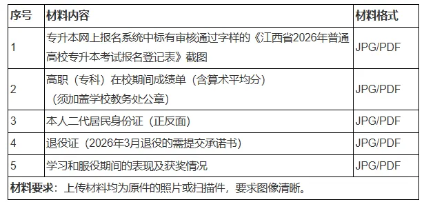 表2 南昌交通学院2026年退役士兵免试专升本报名所需材料
