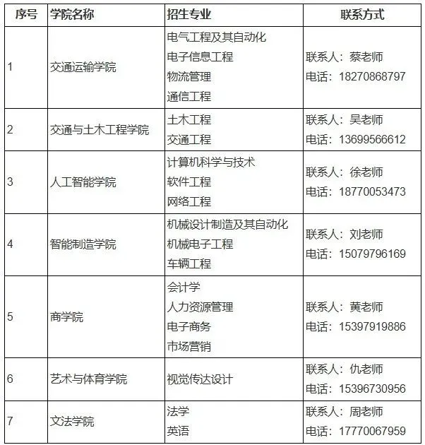 表3 各专业联系方式