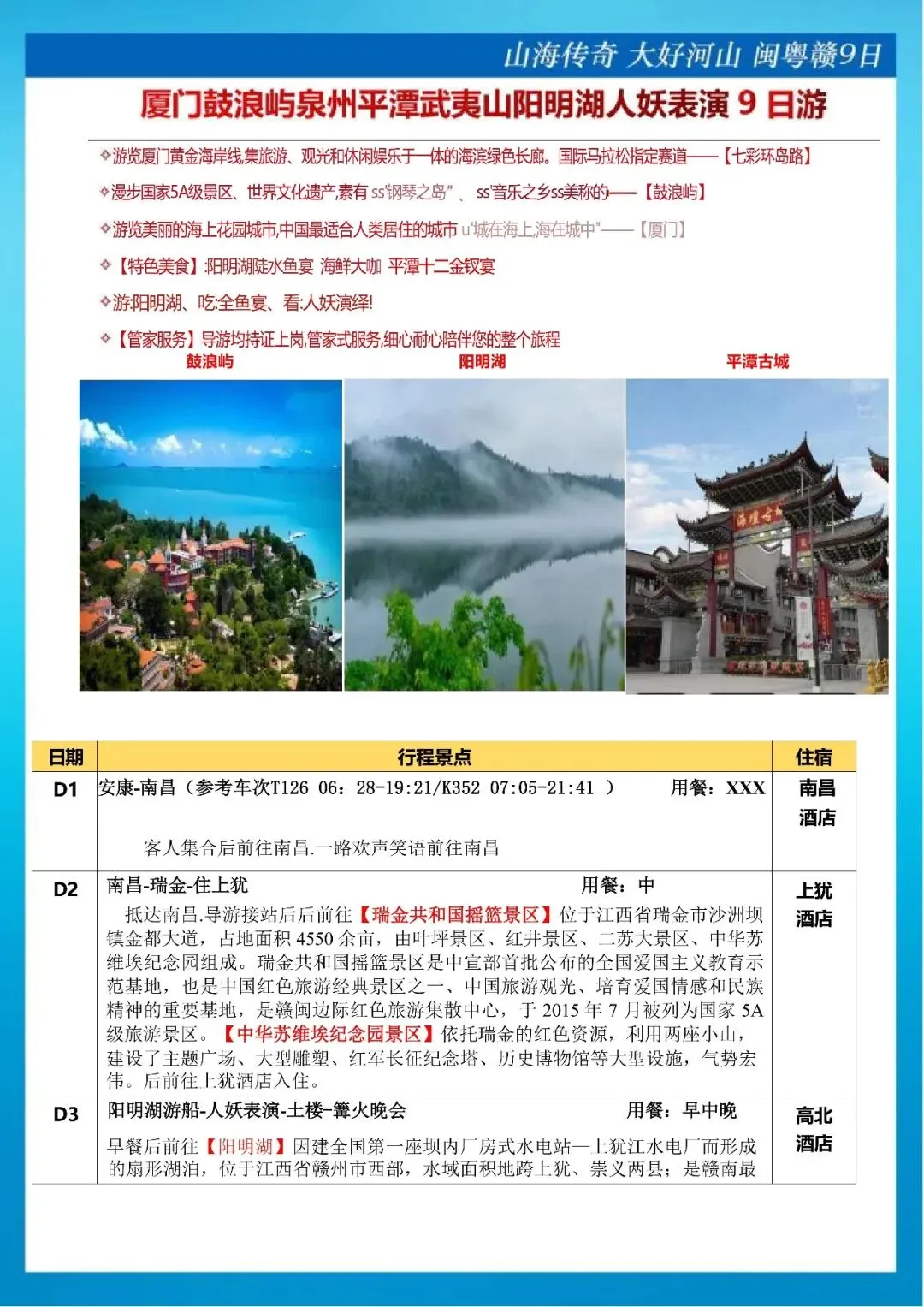 >南昌+平潭+泉州+厦门+土楼+武夷山+东山岛+南澳岛全线畅游9日