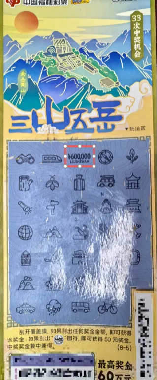 该套彩票一共8张,单票面值20元,33次中奖机会,最高奖金60万元,玩法简单好玩,乐趣无穷。