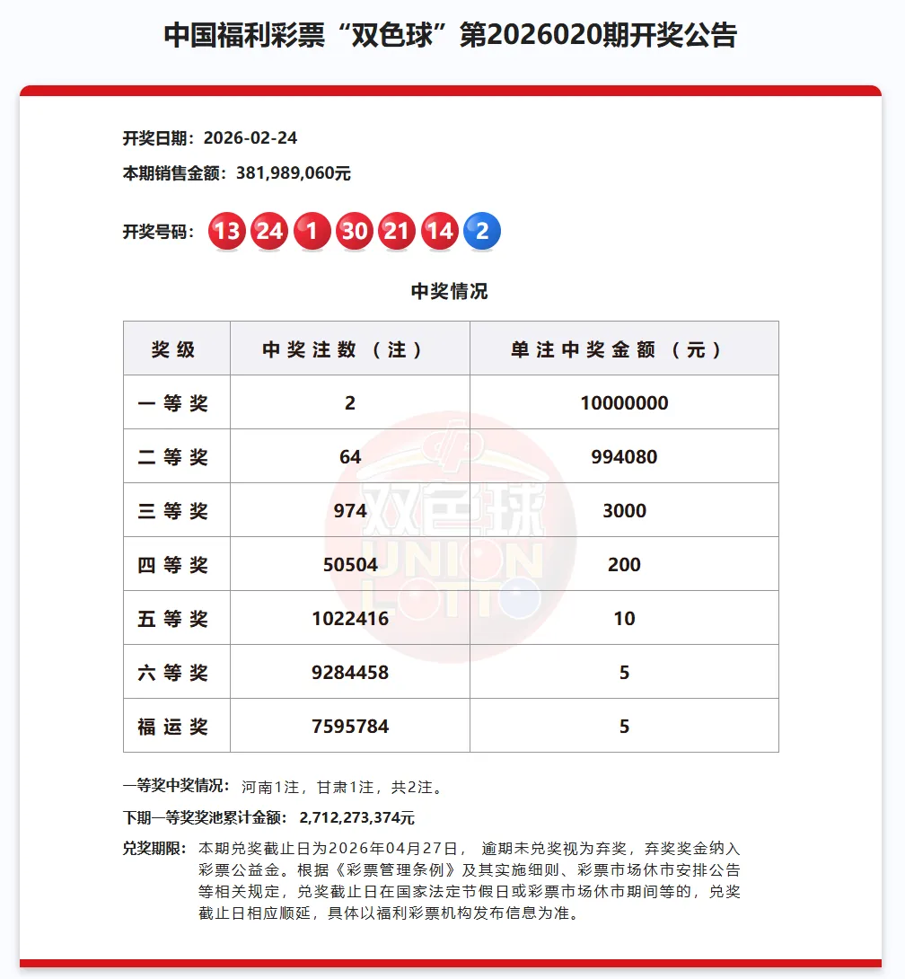 新春首期开奖的同时,福彩“双色球”也迎来了春节后第一期开奖,双色球第2026020期开奖。