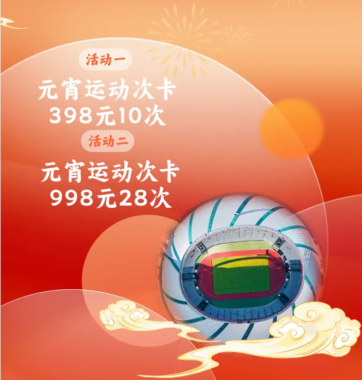 步骤3:线上办理,点击“办运动卡”,即可办理“元宵运动次卡398元10次”、“元宵运动次卡998元28次”活动。
