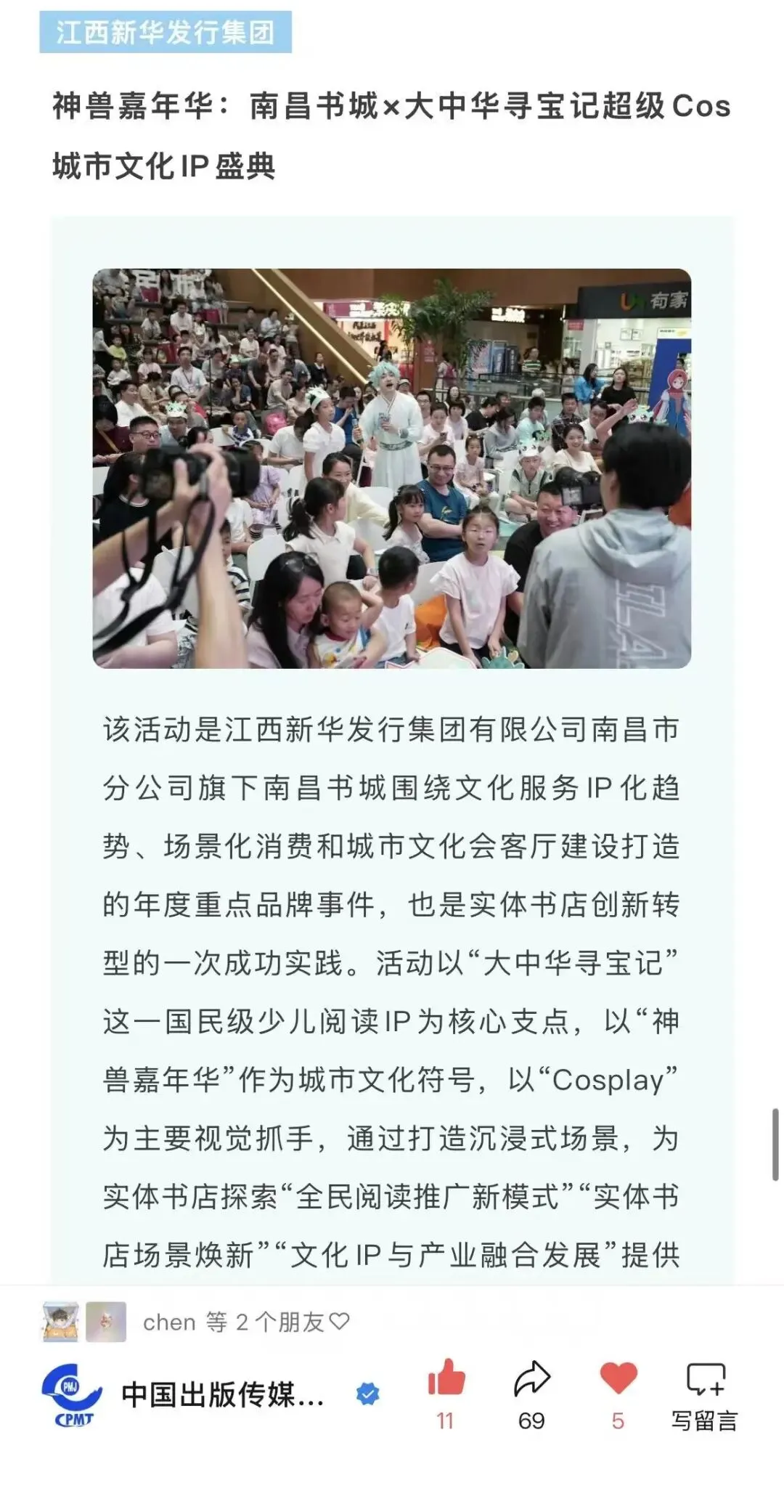 江西新华发行集团有限公司南昌市分公司南昌书城《神兽嘉年华:南昌书城×大中华寻宝记超级Cos城市文化IP盛典》入选本次21家2025出版发行集团品牌传播金案。