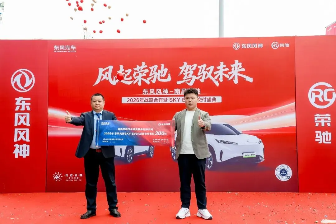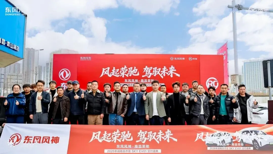 2月25日,“风起荣驰 驾驭未来”奕派科技旗下东风风神与南昌荣驰2026战略合作签署暨首批300台SKY EV01集中交付盛典在南昌举行。