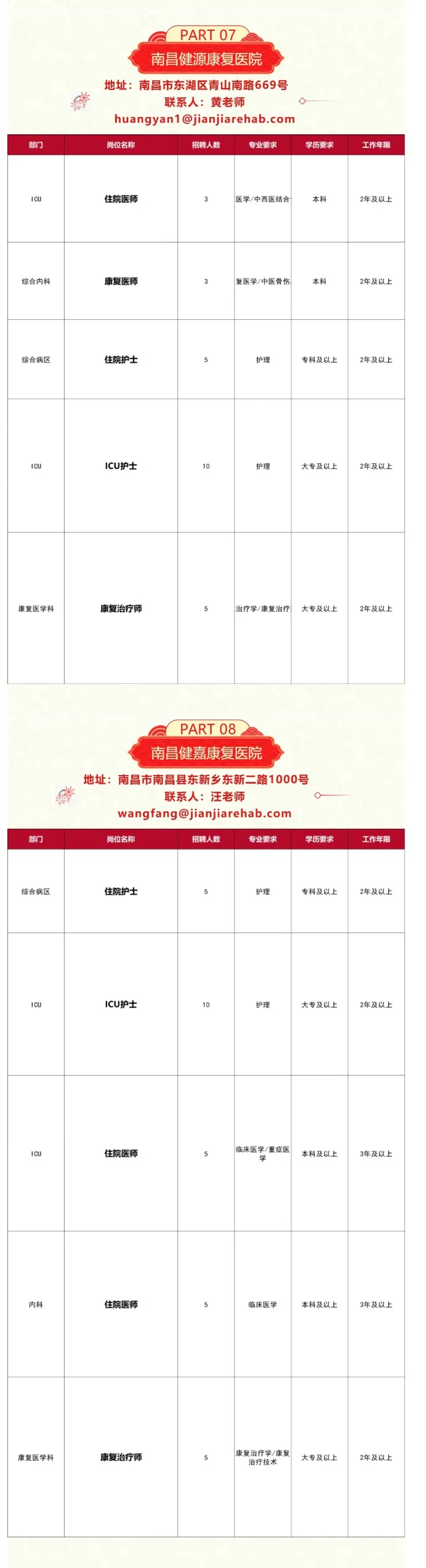 南昌健源康复医院招聘