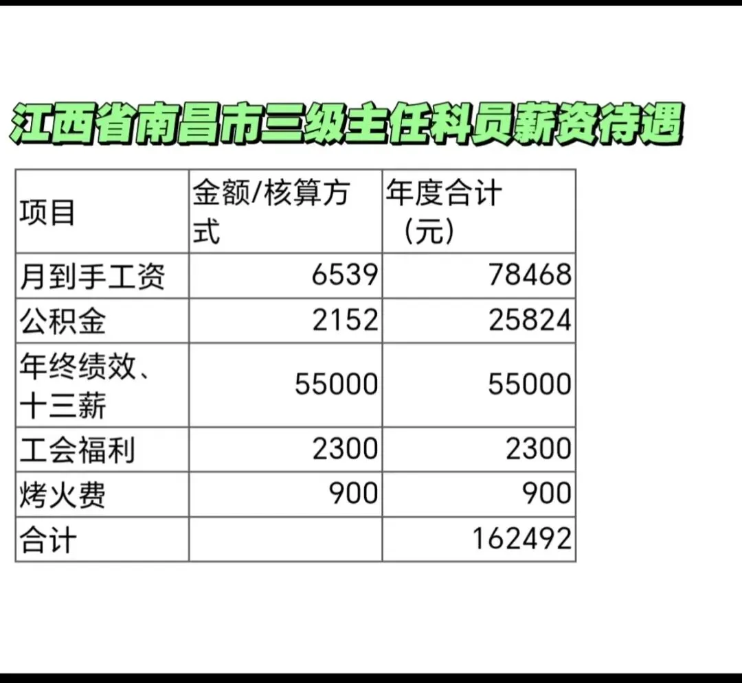 全年总计收入16.2w左右,南昌三级主任科员,研究生6年工龄,全年综合16.2万,属于当地体制内中上水平,稳定、体面、生活无压力。