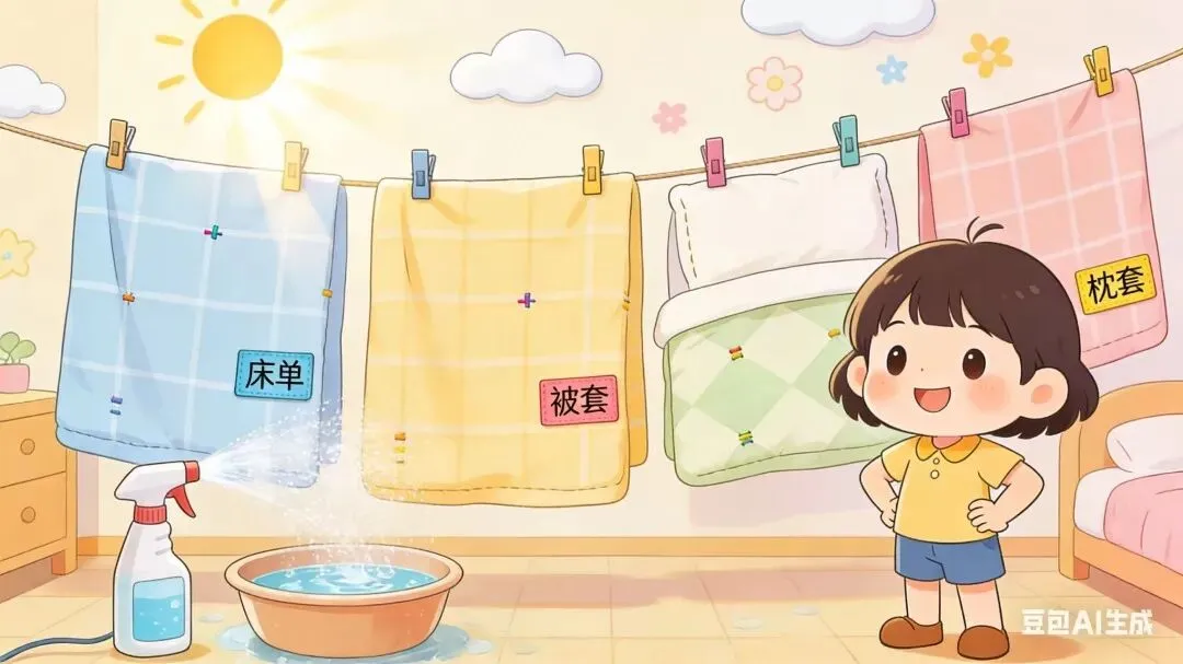 请各位家长利用开学前的时光,提前将孩子的床上用品清洗、晾晒并消毒,为开学做准备。同时为孩子的物品做上标志,避免与其他小朋友弄错。