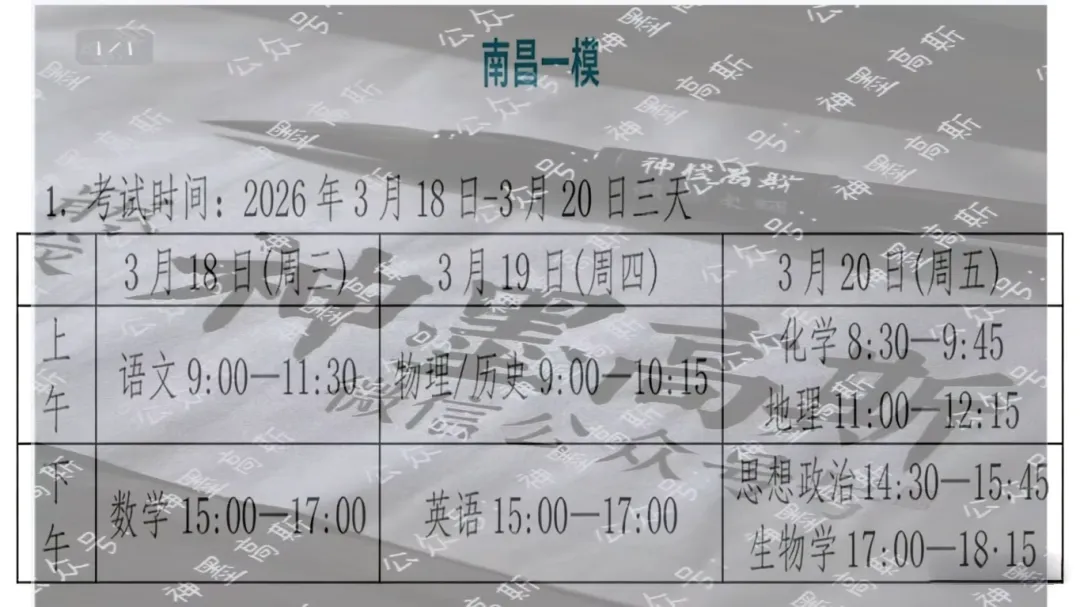 南昌一模,是高三征程里的“风向标”与“试金石”。它模拟高考的命题思路、题型设置与时间分配,完整还原考场氛围,帮你们找准知识漏洞、明晰复习方向;它检验你们半个学期乃至更久以来的学习成果,让优势学科更稳固,让薄弱环节无处隐藏;它更磨炼心态,让你们在紧张与专注中,学会适应压力、掌控节奏。这场考试,分数固然重要,但比分数更珍贵的,是从中收获的经验、总结的方法与沉淀的心态。无论你此刻是信心满满,还是略带忐忑,都请记住:一模不是终点,而是查漏补缺、优化提升的新起点,每一次认真应对,都是在为高考铺路。