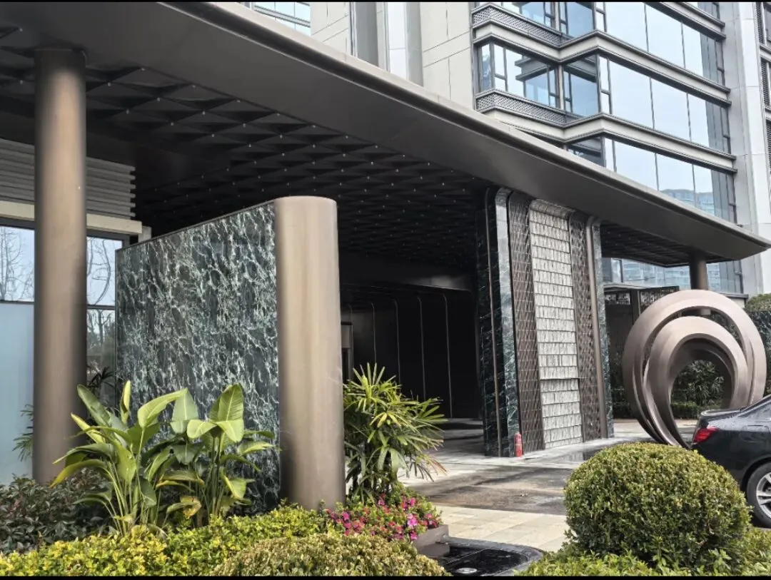 楼栋外立面颜值很高级,全公建立面➕大量铝板装饰。