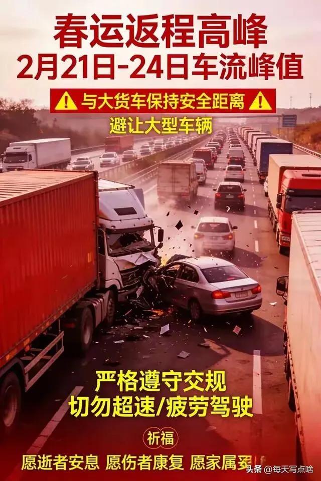 网上有人乱传“倒车、错过出口”,家属已明确否认。事故仍在调查,但真相不该被谣言带偏。这不是个别驾驶失误,而是高速上小车与货车的生存权不对等:体积差、盲区大、制动长、防护弱,一旦侧撞/挤压,小车几乎毫无还手之力。春运返程、车流密集、疲劳驾驶、货车超限超速,每一项都是悬在头顶的刀。