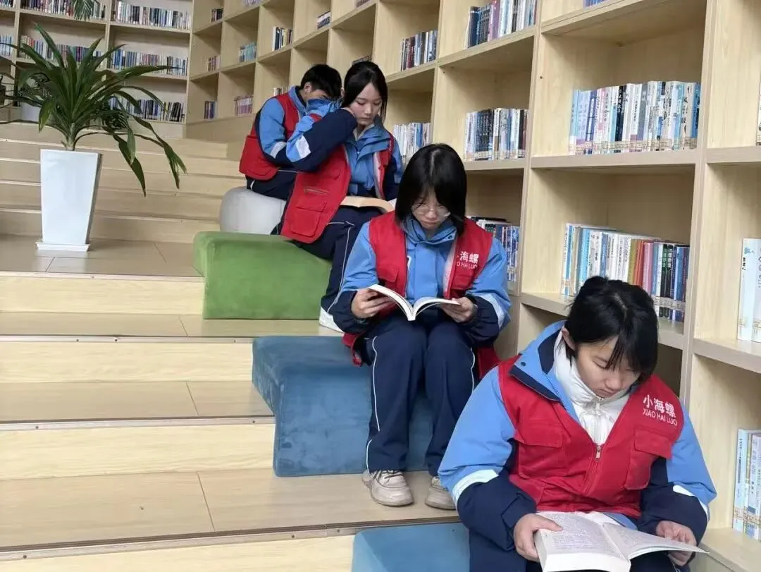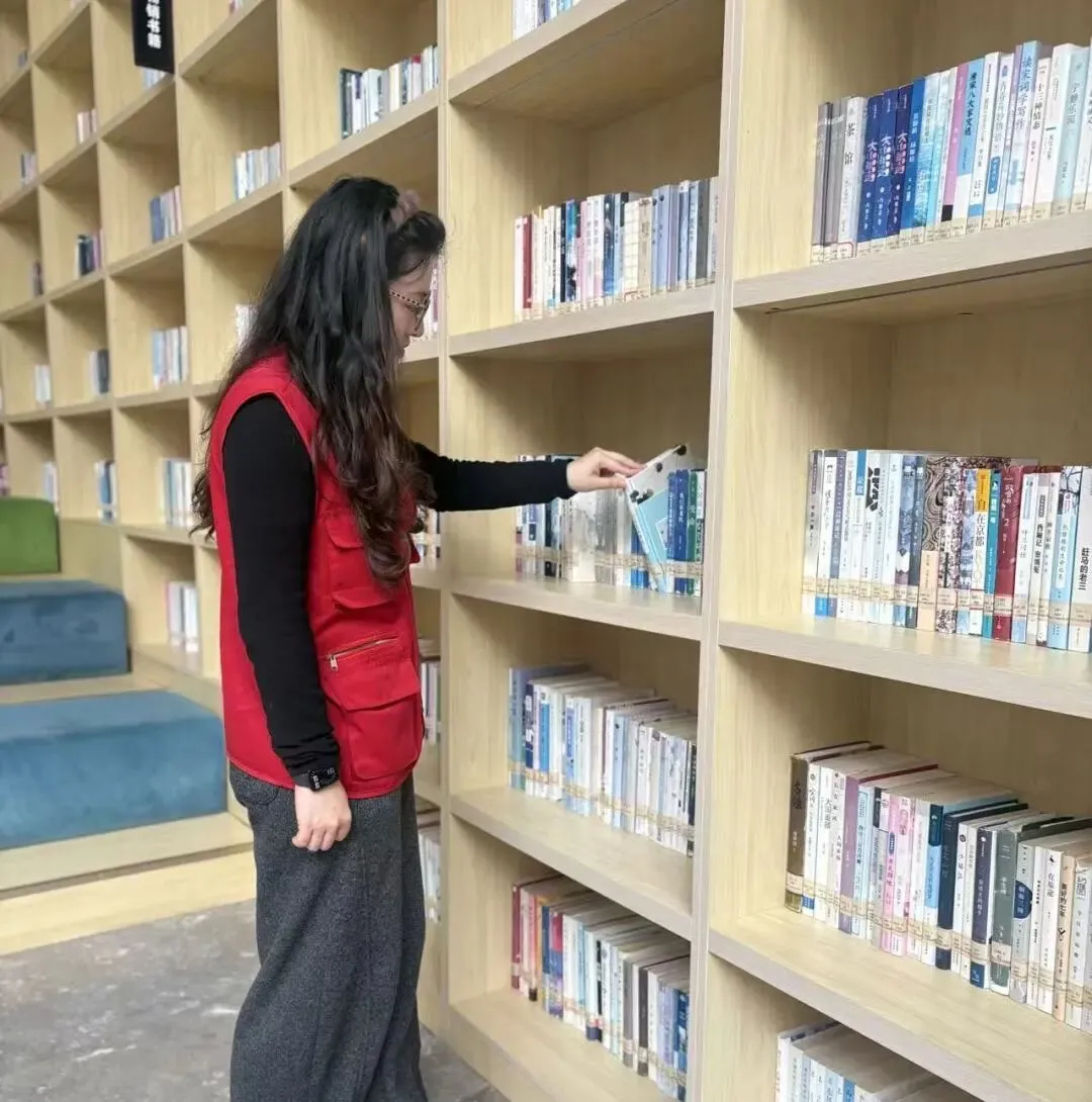 志愿者服务活动结束后,整齐划一地坐在书屋一角,专注地翻阅着书籍。整个人沉浸在文字里,神情认真又温柔,在书香中静静沉淀,成为书屋里一道安静而美好的风景。